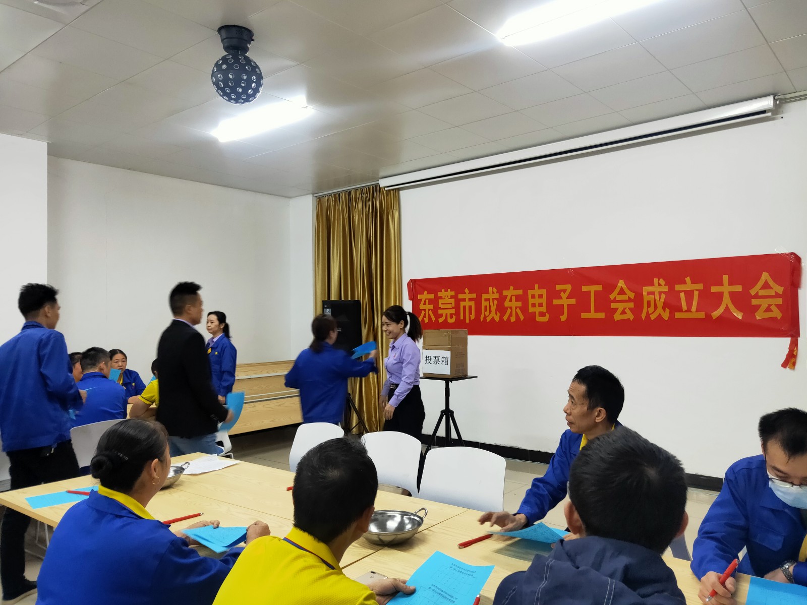 东莞市成东电子科技有限公司工会委员会今天正式成立了,召开了第一次全体会员大会并选举产生了工会主席、副主席、委员。可喜可贺!